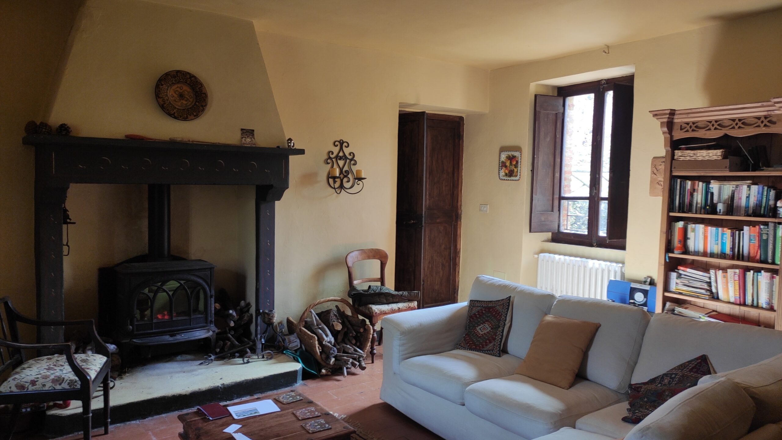 The living room with its new woodburning stove