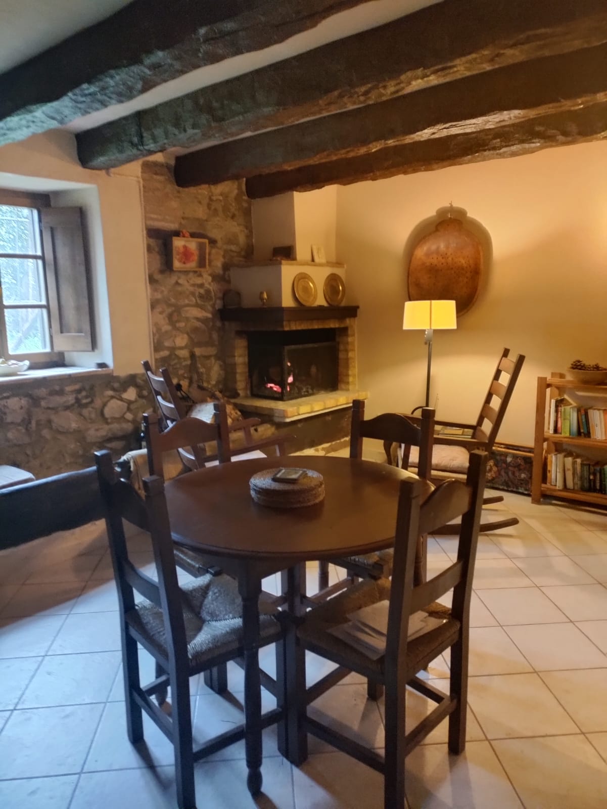 The apartment – dining area and fireplace
